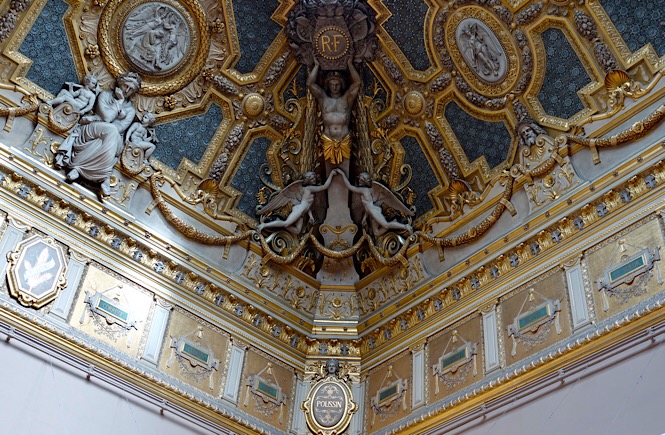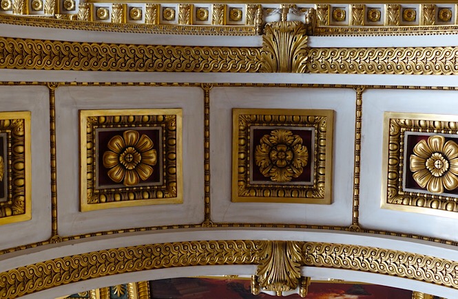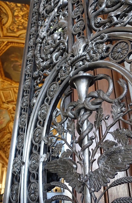 Look down– at the mosaic tile floors, chevron hardwood floor patterns, carpets, etc. If you have any interest in furniture design at all, definitely check out the ornate table and chair leg pieces.